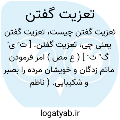 تعزیت گفتن. [ ت َ ی َ گ ُ ت َ ] ( ع مص ) امر فرمودن ماتم زدگان و خویشان مرده را بصبر و شکیبایی. ( ناظم الاطباء ): خرچنگ تعزیت یاران گذشته و تهنیت حیات باقی ایشان بگفت. ( کلیله و دمنه ). گفت ای یار عزیز تعزیتم گوی که نه جای تهنیت است. ( گلستان ).