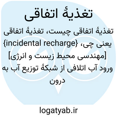 {incidental recharge} [مهندسی محیط زیست و انرژی] ورود آب اتلافی از شبکۀ توزیع آب به درون سفرۀ آب زیرزمینی