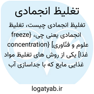 {freeze concentration} [علوم و فنّاوری غذا] یکی از روش های تغلیظ مواد غذایی مایع که با جداسازی آب به صورت یخ تشکیل شده در مایع انجام می شود