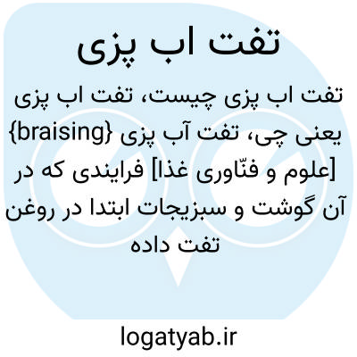 تفت آب پزی. تفت دادن گوشت و سبزیجات در روغن و سپس پختن آرام آنها در مقدار کمی آب را تفت آب پزی می گویند.