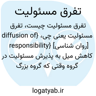 {diffusion of responsibility} [روان شناسی] کاهش میل به پذیرش مسئولیت در گروه وقتی که گروه بزرگ تر می شود