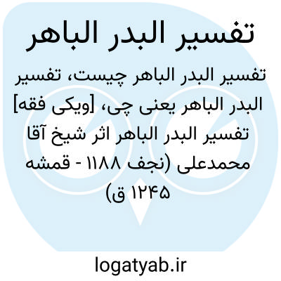 [ویکی فقه] تفسیر البدر الباهر اثر شیخ آقا محمدعلی (نجف ۱۱۸۸ - قمشه ۱۲۴۵ ق) فرزند آقا محمدباقر هزار جریبی نجفی، از علما و مراجع شیعه می باشد.