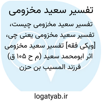 [ویکی فقه] تفسیر سعید مخزومی اثر ابومحمد سعید (م ح ۱۰۵ ق) فرزند المسیب بن حزن قرشی مدنی است. در سـن هـفـتـاد و پـنج سالگی وفات یافت.