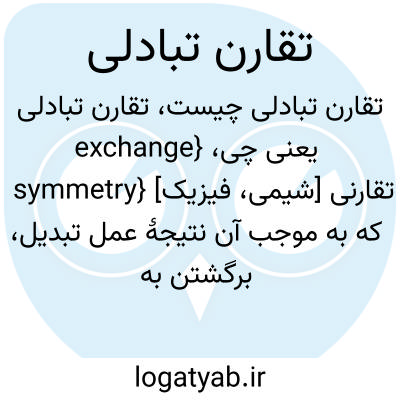 {exchange symmetry} [شیمی، فیزیک] تقارنی که به موجب آن نتیجۀ عمل تبدیل، برگشتن به پیکربندی اولیه است
