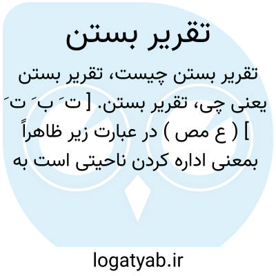 تقریر بستن. [ ت َ ب َ ت َ ] ( ع مص ) در عبارت زیر ظاهراً بمعنی اداره کردن ناحیتی است به برگماشتن متصرفان و عاملان در آن: و مجدالملک به پارس بوده با جد این بنده که تقریر پارس می بست به ابتداء عهد کریم جلالی رعاه اﷲ. ( فارسنامه ابن البلخی ص 118 ).