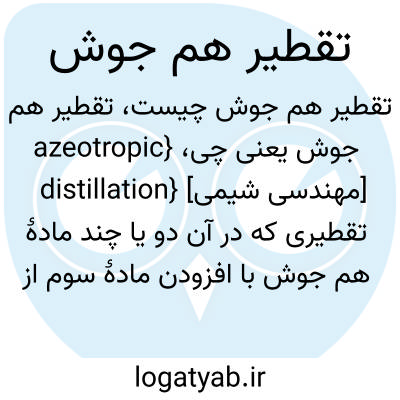 {azeotropic distillation} [مهندسی شیمی] تقطیری که در آن دو یا چند مادۀ هم جوش با افزودن مادۀ سوم از یکدیگر جدا می شوند
