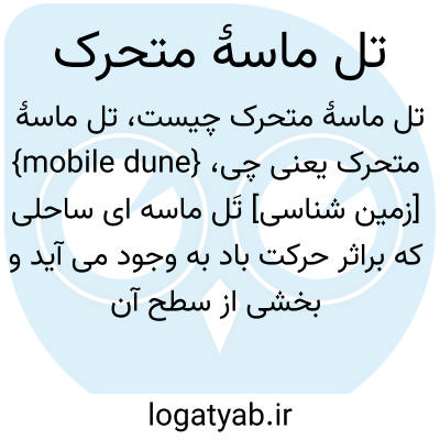 {mobile dune} [زمین شناسی] تَل ماسه ای ساحلی که براثر حرکت باد به وجود می آید و بخشی از سطح آن فاقد پوشش گیاهی است متـ. تَل ماسۀ جابه جاشونده shifting dune