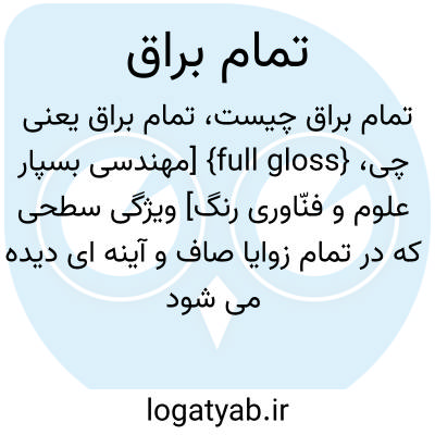 {full gloss} [مهندسی بسپار علوم و فنّاورى رنگ] ویژگی سطحی که در تمام زوایا صاف و آینه ای دیده می شود