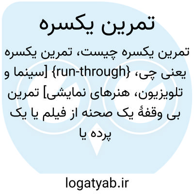 {run-through} [سینما و تلویزیون، هنرهای نمایشی] تمرین بی وقفۀ یک صحنه از فیلم یا یک پرده یا کل نمایش