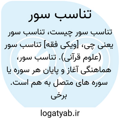 منظور از تناسب سوره ها گاهی هماهنگی هر سوره با سوره پیش از خود است؛ مانند: سوره کوثر که مقابل سوره ماعون و پس از آن است. در سوره ماعون، خداوند چهار صفت بخل، ترک نماز، ریا در نماز و منع زکات را برای منافق برشمرده؛ و در سوره کوثر مقابل بخل، کوثر (خیر کثیر)، مقابل ترک نماز "فصل" (نماز بخوان! ) و مقابل ریا "لربک" (برای رضای خدا) و مقابل امتناع از پرداخت زکات، "و انحر" ( صدقه دادن از گوشت قربانی ) را ذکر کرده است.و گاهی منظور از تناسب سوره ها، تناسب پایان هر سوره با آغاز سوره پس از آن است؛ مانند: تناسب خاتمه سوره سبا با ابتدای سوره فاطر، و آغاز سوره حدید که با تسبیح شروع شده با پایان سوره واقعه که به تسبیح امر می کند.گاهی هم منظور تناسب ابتدای سوره ای با خاتمه همان سوره است؛ مانند ابتدای سوره ص (ص والقرآن ذی الذکر) و انتهای آن (آیه ۸۷): (ان هو الا ذکر للعالمین) که در هر دو کلمه "ذکر" آمده است.