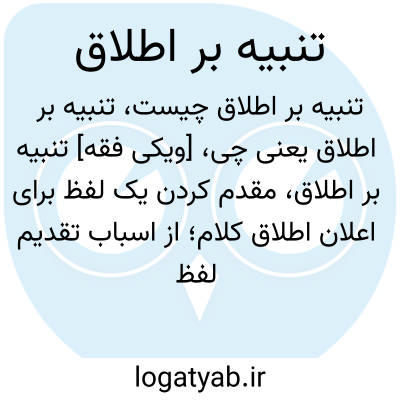 [ویکی فقه] تنبیه بر اطلاق، مقدم کردن یک لفظ برای اعلان اطلاق کلام؛ از اسباب تقدیم لفظ است. «تنبیه بر اطلاق» از اسباب تقدیم و تاخیر و به این معنا است که گوینده برای اعلام مطلق بودن کلامش، لفظی را مقدم می کند؛ ← مثال ۱. ↑ انعام/سوره۶، آیه۱۰۰. فرهنگ نامه علوم قرآنی، برگرفته از مقاله «تنبیه بر اطلاق». ...