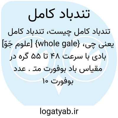 {whole gale} [علوم جَوّ] بادی با سرعت 48 تا 55 گره در مقیاس باد بوفورت متـ. عدد بوفورت 10 Beaufort number 10