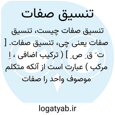 تنسیق صفات. [ ت َ ق ِ ص ِ ] ( ترکیب اضافی، اِ مرکب ) عبارت است از آنکه متکلم موصوف واحد را صفات متعدد بیان نماید خواه به استقلال...: