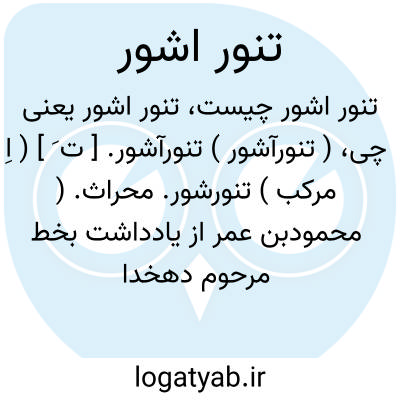 ( تنورآشور ) تنورآشور. [ ت َ ] ( اِ مرکب ) تنورشور. محراث. ( محمودبن عمر از یادداشت بخط مرحوم دهخدا ). محضاء. مسعار. ( یادداشت ایضاً ). رجوع به تنورآشوب شود.
