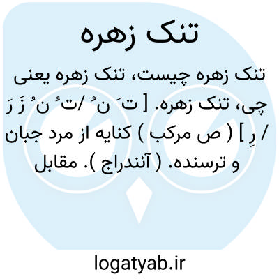 تنک زهره. [ ت َ ن ُ /ت ُ ن ُ زَ رَ / رِ ] ( ص مرکب ) کنایه از مرد جبان و ترسنده. ( آنندراج ). مقابل سخت دل و قویدل: