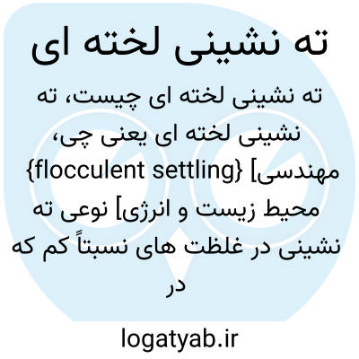 {flocculent settling} [مهندسی محیط زیست و انرژی] نوعی ته نشینی در غلظت های نسبتاً کم که در آن ذرات ابتدا به صورت لخته درمیآیند و سپس با سرعت بیشتری ته نشین می شوند