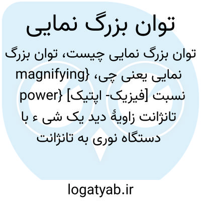 {magnifying power} [فیزیک- اپتیک] نسبت تانژانت زاویۀ دید یک شی ء با دستگاه نوری به تانژانت زاویۀ دید همان شی ء بدون دستگاه نوری