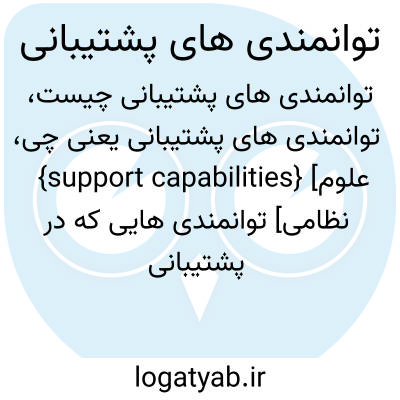 {support capabilities} [علوم نظامی] توانمندی هایی که در پشتیبانی از عملیات رزمی به کار گرفته می شوند، مانند پشتیبانی آتش توپخانه و پشتیبانی آتش هوایی و عملیات هسته ای، میکربی، شیمیایی، چریکی و روانی