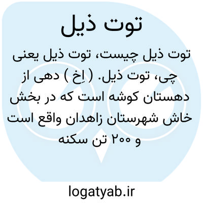توت ذیل. ( اِخ ) دهی از دهستان کوشه است که در بخش خاش شهرستان زاهدان واقع است و 200 تن سکنه دارد. ( از فرهنگ جغرافیایی ایران ج 8 ).