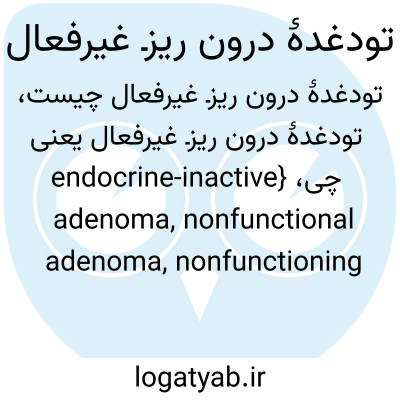 {endocrine-inactive adenoma, nonfunctional adenoma, nonfunctioning adenoma, nonsecreting adenoma, nonsecretory adenoma} [علوم پایۀ پزشکی] تودغده ای در غدۀ زیرمغزی که هیچ هورمونی را بیش از مقدار طبیعی ترشح نمی کند