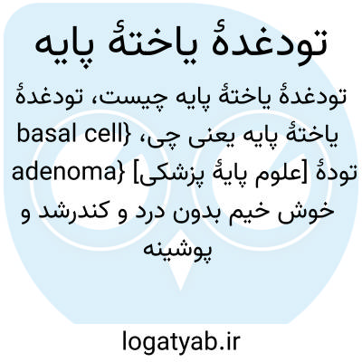 {basal cell adenoma} [علوم پایۀ پزشکی] تودۀ خوش خیم بدون درد و کندرشد و پوشینه دار غدد بزاقی که ممکن است منشأ مجرایی یا زمینه ای داشته باشد