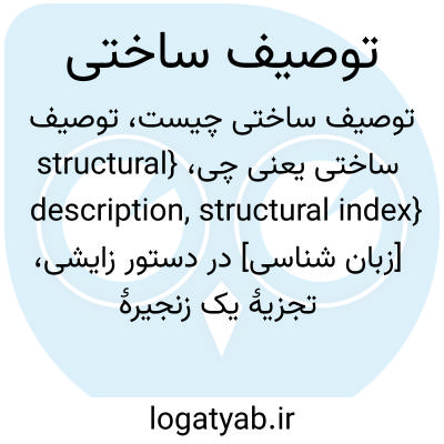 {structural description, structural index} [زبان شناسی] در دستور زایشی، تجزیۀ یک زنجیرۀ زبانی ازطریق قلاب گذاری برای عملکرد گشتار متـ. تجزیۀ ساختی structural analysis