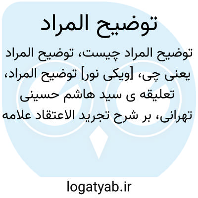 [ویکی فقه] توضیح المراد (کتاب). توضیح المراد تعلیقه ی سید هاشم حسینی تهرانی بر شرح تجرید الاعتقاد علامه حسن بن یوسف بن علی بن مطهر حلی، در کلام و اصول اعتقادات شیعه میباشد بیشتر مباحث به روش فلسفی و به زبان عربی نگاشته است.