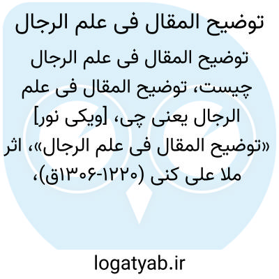 [ویکی نور] «توضیح المقال فی علم الرجال»، اثر ملا علی کنی (1220-1306ق)، با تحقیق محمدحسین مولوی، کتاب مبسوطی است در علم درایه و رجال، که به زبان عربی و در سال 1262ق نوشته شده است.