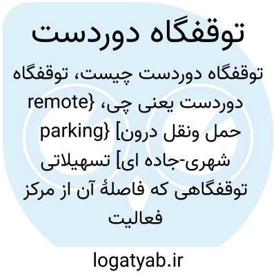 {remote parking} [حمل ونقل درون شهری-جاده ای] تسهیلاتی توقفگاهی که فاصلۀ آن از مرکز فعالیت بیش از آن است که بتوان پیاده طی کرد و با وسایل نقلیۀ خطی به مرکز فعالیت متصل می شود