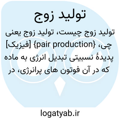 {pair production} [فیزیک] پدیدۀ نسبیتی تبدیل انرژی به ماده که در آن فوتون های پرانرژی، در گذر از محدودۀ میدان الکتریکی قوی، به طور هم زمان به یک الکترون منفی و یک الکترون مثبت (پوزیترون ) تبدیل می شوند