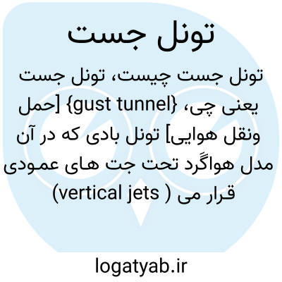 {gust tunnel} [حمل ونقل هوایی] تونل بادی که در آن مدل هواگَرد تحت جت هـای عمـودی (vertical jets ) قـرار می گیرد تا جَست های باد در هنگام پرواز واقعی بر روی آن شبیه سازی شود