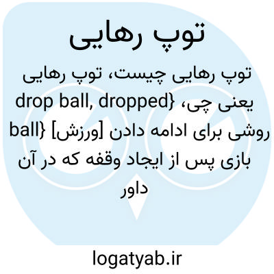 {drop ball, dropped ball} [ورزش] روشی برای ادامه دادن بازی پس از ایجاد وقفه که در آن داور توپ را میان دو نفر از بازیکنان دو تیم رها می کند و تنها پس از برخورد توپ با زمین می توان به آن ضربه زد یا آن را تصاحب کرد