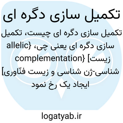 {allelic complementation} [زیست شناسی-ژن شناسی و زیست فنّاوری] ایجاد یک رخ نمود تقریباً طبیعی در یک موجود زنده با دو دگرۀ جهش یافتۀ مختلف در وضعیت ترانس/ تراسو