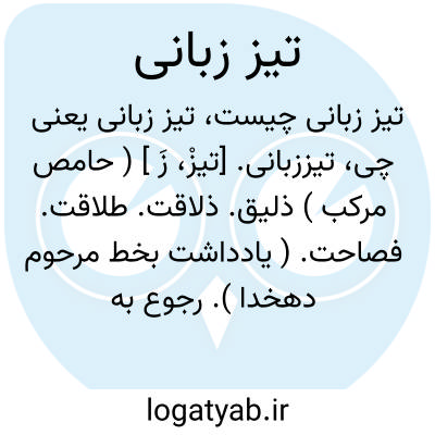 تیززبانی. [تیزْ، زَ ] ( حامص مرکب ) ذلیق. ذلاقت. طلاقت. فصاحت. ( یادداشت بخط مرحوم دهخدا ). رجوع به ماده قبل شود.