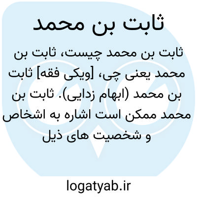 [ویکی فقه] ثابت بن محمد (ابهام زدایی). ثابت بن محمد ممکن است اشاره به اشخاص و شخصیت های ذیل باشد: • ابوالعز ثابت بن محمد ثقفی اصفهانی، از محدّثین عامّه در قرن ششم هجری در اصفهان• ابوالفضل ثابت بن محمد صفار اصفهانی، از محدّثین عامّه در قرن ششم هجری در اصفهان• ابوالفرج ثابت بن محمد مدینی اصفهانی، از محدّثین عامّه در قرن ششم هجری در اصفهان• ابوطالب ثابت بن نصر بن بکروس اصفهانی، از محدّثین قرن ششم هجری در اصفهان• ابوسعد ثابت بن محمد خجندی اصفهانی، از علما و فقهای بزرگ آل خجند• ابومحمد ثابت بن عبدالصمد خجندی اصفهانی، از روسای شافعیان اصفهان و از بزرگان و شعرای آل خجند• ابوالعز ثابت بن محمد مستوفی اصفهانی، دارای مقام استیفا در زمان سلطان مسعود سلجوقی• ابوالفتوح ثابت بن محمد جرجانی، ثابِتِ بْنِ مُحَمَّدِ جُرْجانی، ابوالفتوح (۳۵۰- مق ۴۳۱ق/ ۹۶۱-۱۰۴۰م)، نحوی و ادیب• ابومحمد ثابت بن اسلم بنانی، ثابِت بن اَسلَم بُنانی، از بزرگان تابعین و محدّثان بصره در قرن دوم هجری• ابوالفضل ثابت بن محمد صفار اصفهانی، از محدّثین عامّه در قرن ششم هجری در اصفهان