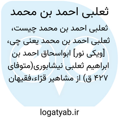[ویکی نور] ابواسحاق احمد بن ابراهیم ثعلبی نیشابوری(متوفای 427 ق) از مشاهیر قرّاء،فقیهان و مفسران قرن پنجم هجری می باشد.ابن خلکان می نویسد: