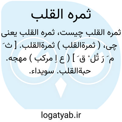 ( ثمرةالقلب ) ثمرةالقلب. [ ث َ م َ رَ تُل ْ ق َ ] ( ع اِ مرکب ) مهجه. حبةالقلب. سویداء.