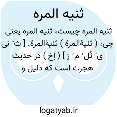 ( ثنیةالمرة ) ثنیةالمرة. [ ث َ نی ی َ تُل ْ م َ رَ ] ( اِخ ) در حدیث هجرت است که دلیل و راهنمای حضرت رسول از آنجا بگذشت و در حدیث دیگر هم ذکرش آمده است. ( مراصد الاطلاع ).