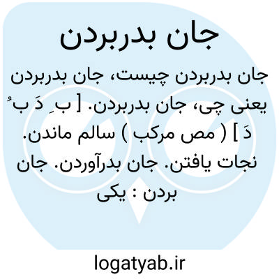 جان بدربردن. [ ب ِ دَ ب ُ دَ ] ( مص مرکب ) سالم ماندن. نجات یافتن. جان بدرآوردن. جان بردن: یکی پیش خصم آمدن مردوار دوم جان بدربردن از کارزار.سعدی.زین بحر عمیق جان بدربرد آنکس که هم از کنار برگشت.سعدی.رجوع به جان بدرآوردن شود.