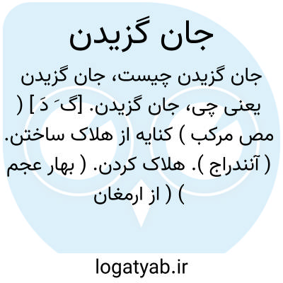 جان گزیدن. [گ َ دَ ] ( مص مرکب ) کنایه از هلاک ساختن. ( آنندراج ). هلاک کردن. ( بهار عجم ) ( از ارمغان آصفی ):