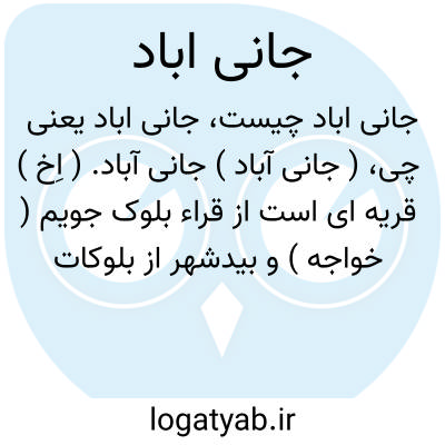 ( جانی آباد ) جانی آباد. ( اِخ ) قریه ای است از قراء بلوک جویم ( خواجه ) و بیدشهر از بلوکات فارس. واقع در جلگه و از شمال بجنوب طول آن چهارفرسخ است و عرض آن نیز همینقدر است. رودخانه ای که منبعش ازین بلوک است، پس از آنکه زراعت اینجا را مشروب میسازد رو بجنوب بفیروزآباد و از همان طرف برودخانه قیر و کارزین ملحق میشود ( از مرآت البلدان ج 4 ص 131 ).