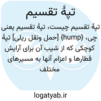 {hump} [حمل ونقل ریلی] تپۀ کوچکی که از شیب آن برای آرایش قطارها و اعزام آنها به مسیرهای مختلف استفاده شود