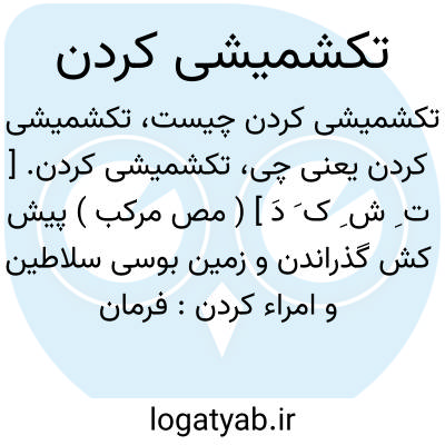 تکشمیشی کردن. [ ت ِ ش ِ ک َ دَ ] ( مص مرکب ) پیش کش گذراندن و زمین بوسی سلاطین و امراء کردن: فرمان شد تا هم در آن موضع در مصاحبت پادشاهزادگان... تکشمیشی کردند. ( جهانگشای جوینی ). ارکان حضرت... او را مجال آن نبود که قدم تقدیم برگیرند... مگر آن کس که روز اول تکشمیشی کردی و هم از بیرون بازگشتی. ( جهانگشای جوینی ). شرایط نیکو بندگی به تقدیم رسانید پاسبان به غایت نیکو تکشمیشی کرد. ( تاریخ غازان ص 19 )و امرا برسیدند و اولچایها که گرفته بودند تکشمیشی کردند و به انواع سیورغامیشی مخصوص گشتند. ( تاریخ غازان ص 40 ). با جماعت امرا به بندگی فرستاد تا تکشمیشی کردند. ( تاریخ غازان ص 65 ). و رجوع به تکشمشی شود.
