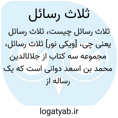 [ویکی نور] ثلاث رسائل، مجموعه سه کتاب از جلال‎الدین محمد بن اسعد دوانی است که یک رساله از شهاب‎الدین سهروردی (شیخ اشراق)، نیز به آن ضمیمه شده است.