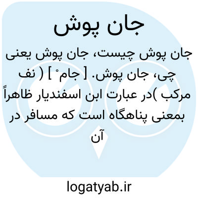جان پوش. [ جام ْ ] ( نف مرکب )در عبارت ابن اسفندیار ظاهراً بمعنی پناهگاه است که مسافر در آن بیارامد: و سهل بن المرزبان گفتند لارجان داشتی، پیش از او بزمستان و تابستان بدین راه که اکنون می شوند گذر نبود، جمله بریده و جان پوشها و رباطها او کرد و آن راه ایمن گردانید. ( تاریخ طبرستان ).