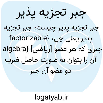 {factorizable algebra} [ریاضی] جبری که هر عضو آن را بتوان به صورت حاصل ضرب دو عضو آن جبر نوشت