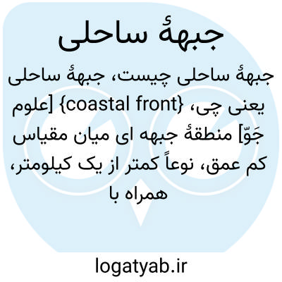 {coastal front} [علوم جَوّ] منطقۀ جبهه ای میان مقیاس کم عمق، نوعاً کمتر از یک کیلومتر، همراه با تغییر آشکار راستای چرخندی باد و تباین شدید گرما