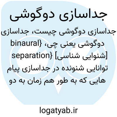 {binaural separation} [شنوایی شناسی] توانایی شنونده در جداسازی پیام هایی که به طور هم زمان به دو گوش می رسد