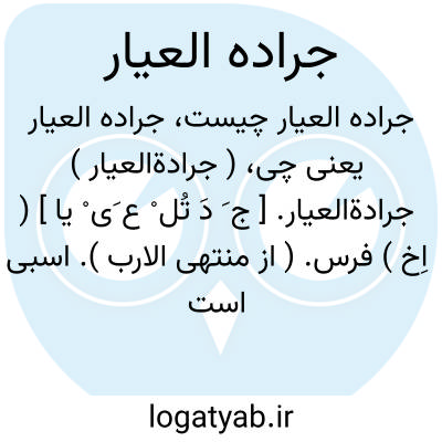 ( جرادةالعیار ) جرادةالعیار. [ ج َ دَ تُل ْ ع َی ْ یا ] ( اِخ ) فرس. ( از منتهی الارب ). اسبی است که در تیز دویدن مانند ملخ باشد و بدین جهت بدین اسم ملقب شده است. ( از اقرب الموارد ). نام اسبی است یا اینکه عیار نام مردی است که دندان پیشین او شکسته بود و ملخی گرفت تا بخورد و پس از رنجی که متحمل شده بود ملخ از راه دندان شکسته از دهان او خارج شد. ( از شرح قاموس ).