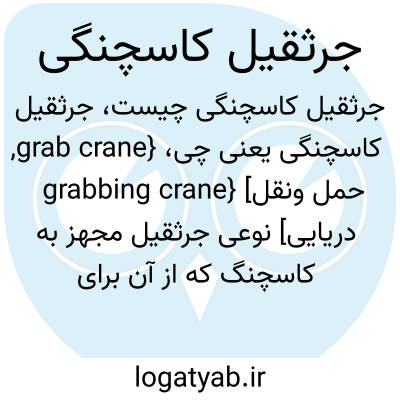 {grab crane, grabbing crane} [حمل ونقل دریایی] نوعی جرثقیل مجهز به کاسچنگ که از آن برای بارگیری و تخلیۀ کالاهای فله ای استفاده می شود